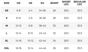 XXS (32-34), XS (34-36), S (36-38), M (38-40), L(40-42), XL(42-44), XXL(44-46)